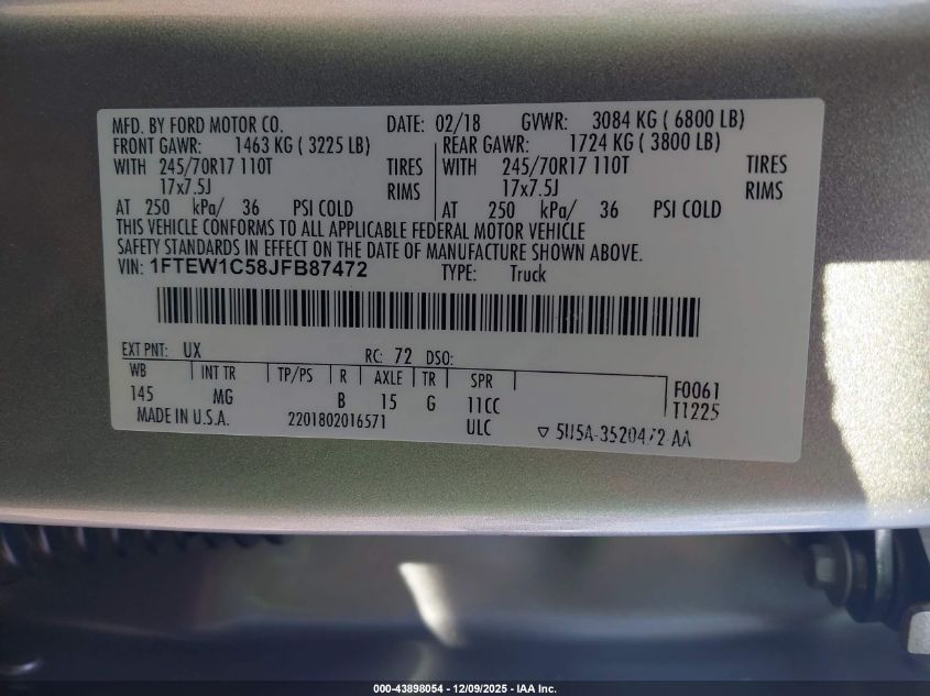 Колір СрібнийЦиліндри 8VIN 1FTEW1C58JFB87472Стан СтаціонарноУшкодження Передня або задня