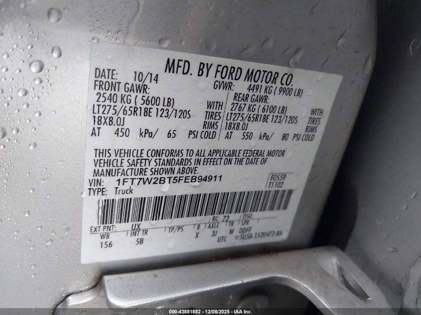 Колір СрібнийЦиліндри 8Привід Повний привідVIN 1FT7W2BT5FEB94911Стан Заводиться та їде (перевірено)Ушкодження Передня або задняДата аукціона 2025-12-17