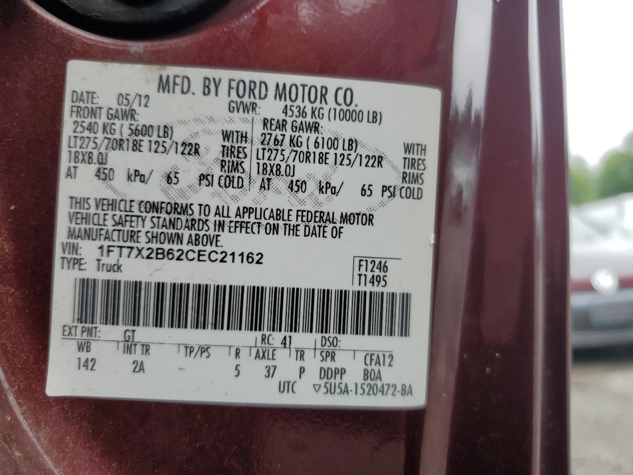 2012 FORD F-250 - 1FT7X2B62CEC21162, колір - Бордовий, 6.2, Бензин, 4x4 з заднім приводом із США