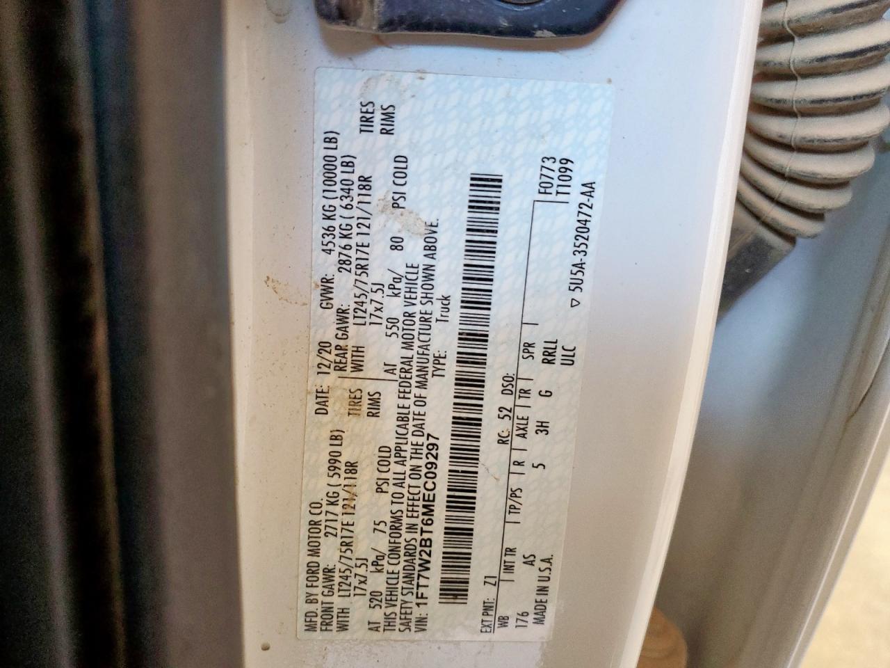 Колір БілийЦиліндри 8Привід 4x4 з заднім приводомVIN 1FT7W2BT6MEC09297Стан Заводиться та їде (перевірено)Ушкодження НезначніДата аукціона 2025-10-09
