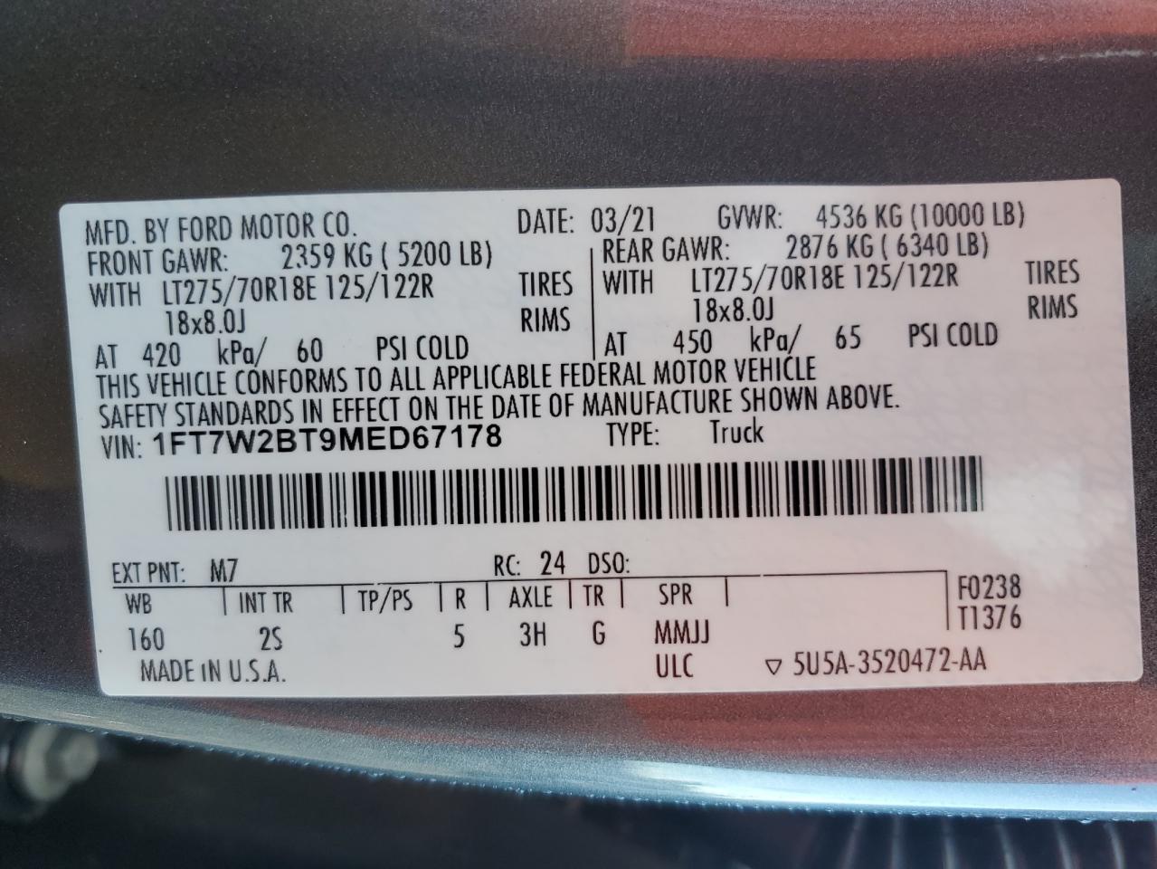 2021 FORD F-250 - 1FT7W2BT9MED67178, колір - Сірий, 6.7, Дизель, 4x4 з заднім приводом із США