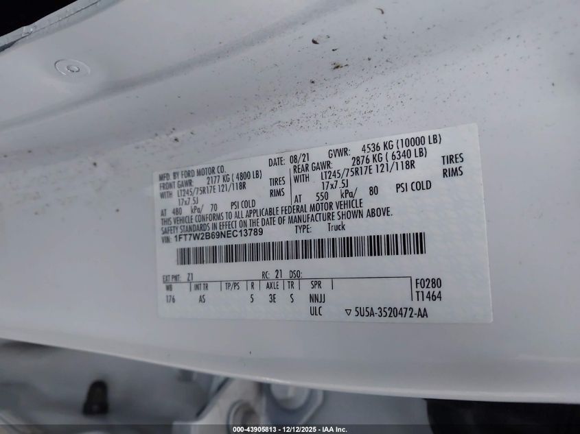 Колір БілийЦиліндри 8Привід Повний привідVIN 1FT7W2B69NEC13789Стан СтаціонарноУшкодження Передня або задня