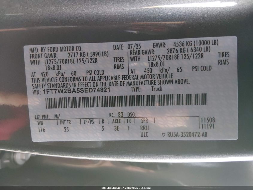 2025 FORD F-250 - 1FT7W2BA5SED74821, колір - Сірий, 6.8, Бензин, Повний привід із США