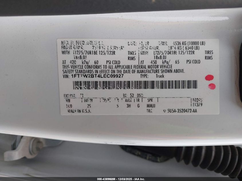 2020 FORD F-250 - 1FT7W2BT4LEC09927, колір - Білий, 6.7, Дизель, Повний привід із США