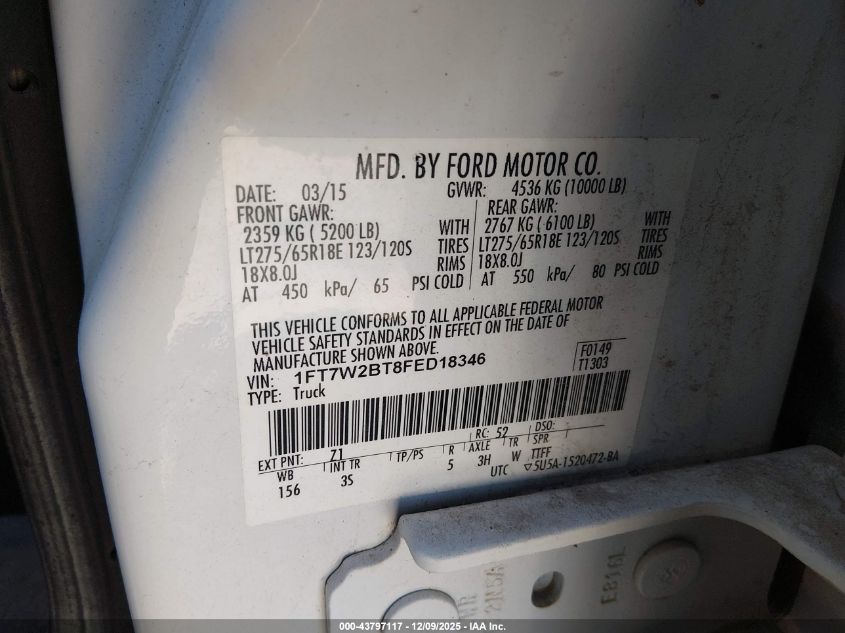 2015 FORD F-250 - 1FT7W2BT8FED18346, колір - Білий, 6.7, Дизель, Повний привід із США