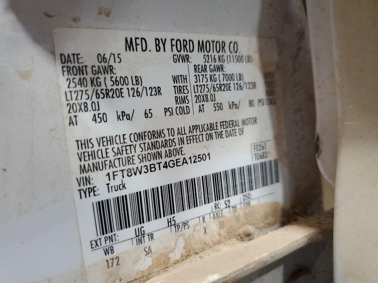 Колір БілийЦиліндри 8Привід 4x4 з заднім приводомVIN 1FT8W3BT4GEA12501Стан НевідомоУшкодження Передня або задня