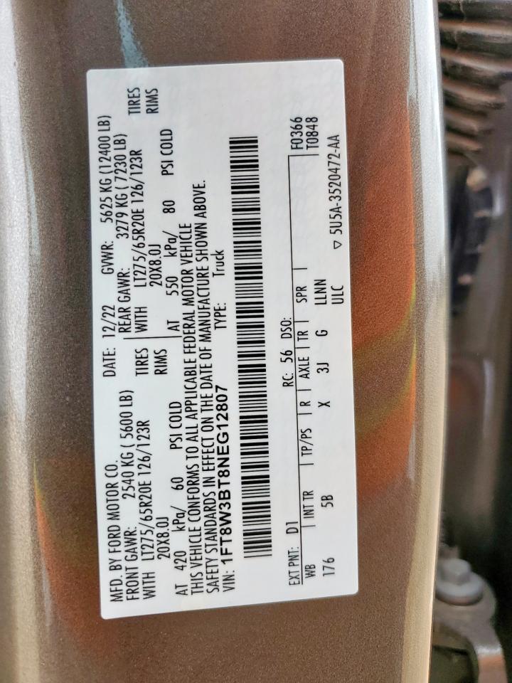 2022 FORD F-350 - 1FT8W3BT8NEG12807, колір - Коричневий, 6.7, Дизель, 4x4 з заднім приводом із США