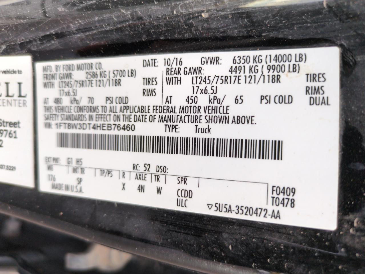 Колір ЧорнийЦиліндри 8Привід 4x4 з заднім приводомVIN 1FT8W3DT4HEB76460Стан Заводиться та їде (перевірено)Дата аукціона 2025-10-08