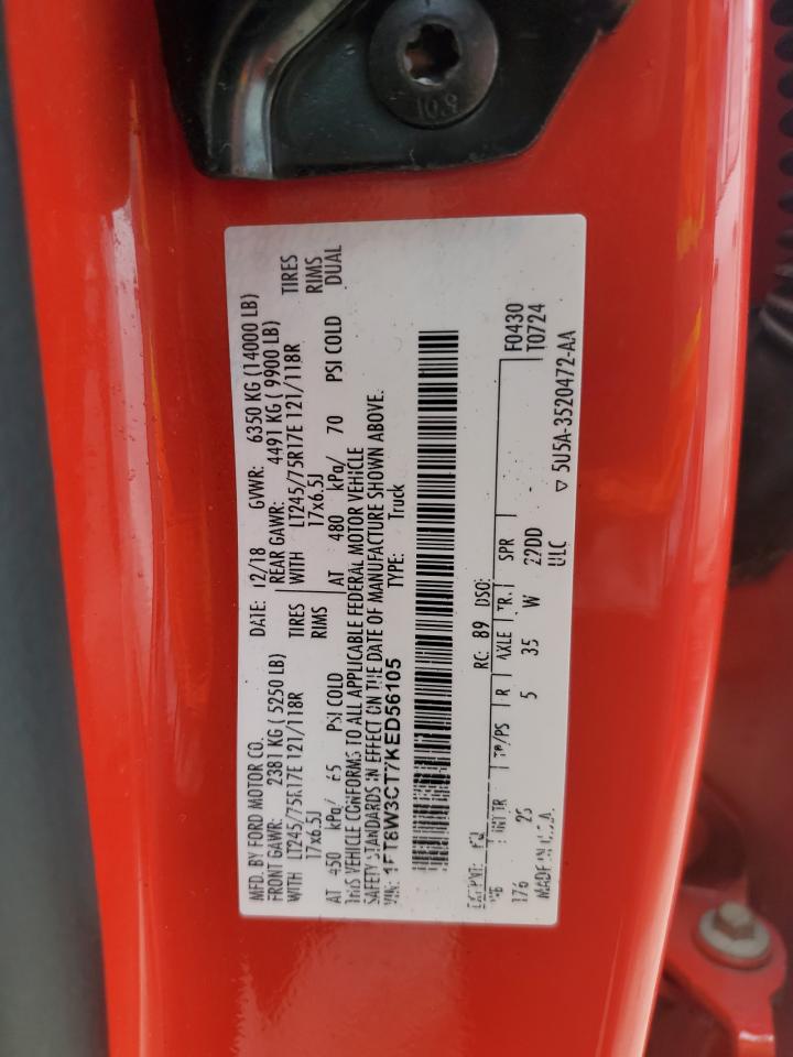 2019 FORD F-350 - 1FT8W3CT7KED56105, колір - Червоний, 6.7, Дизель, Задній привід із США