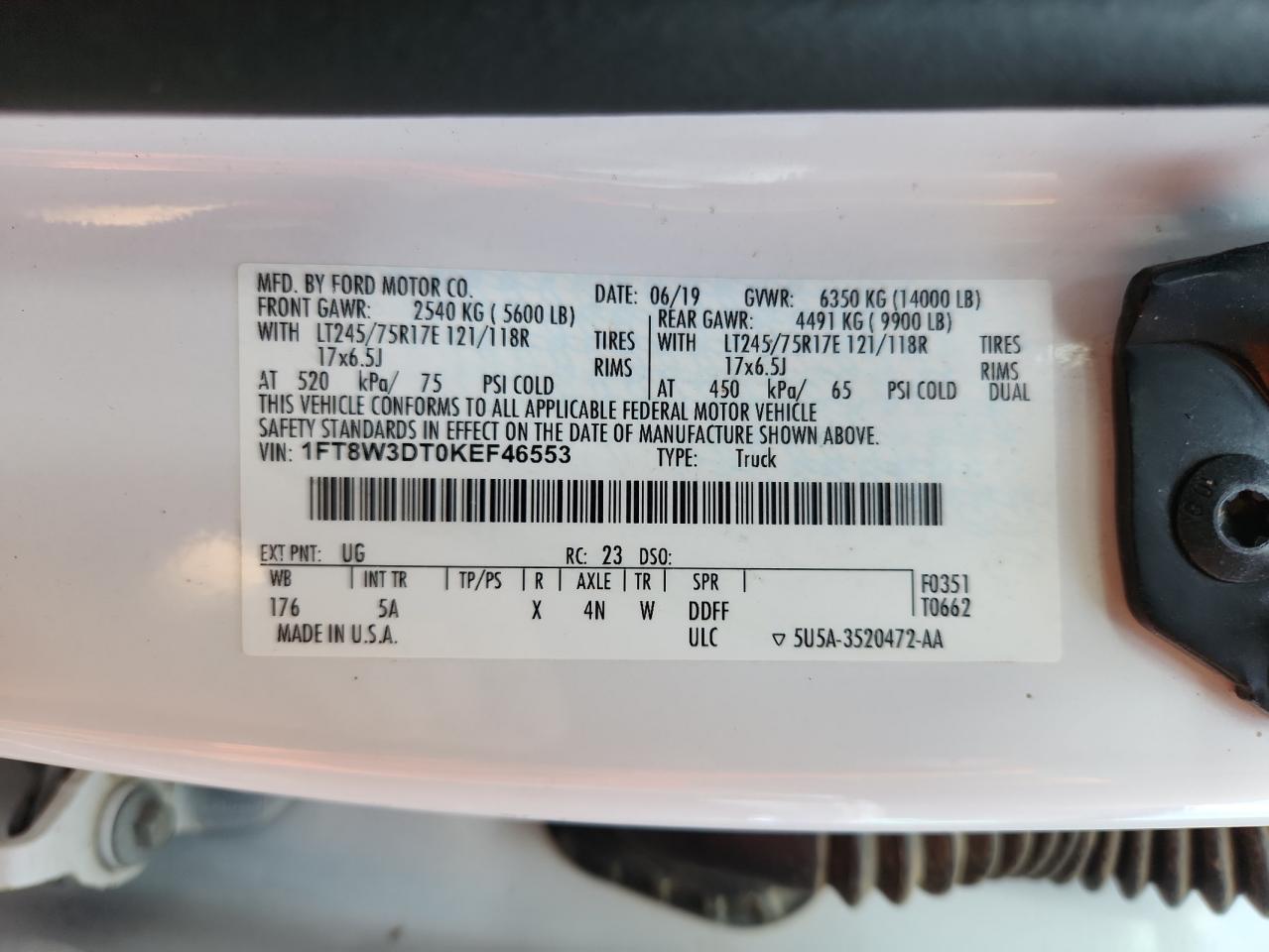2019 FORD F-350 - 1FT8W3DT0KEF46553, колір - Білий, 6.7, Дизель, 4x4 з заднім приводом із США