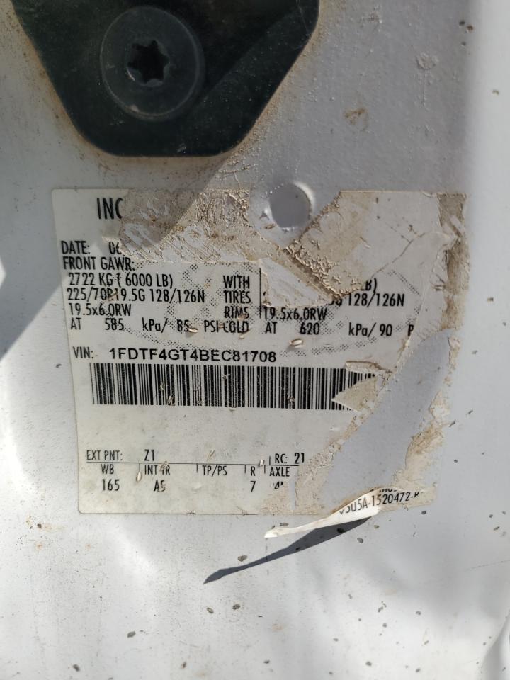 Колір БілийЦиліндри 8Привід Задній привідVIN 1FDTF4GT4BEC81708Стан НевідомоУшкодження НезначніДата аукціона 2025-10-13