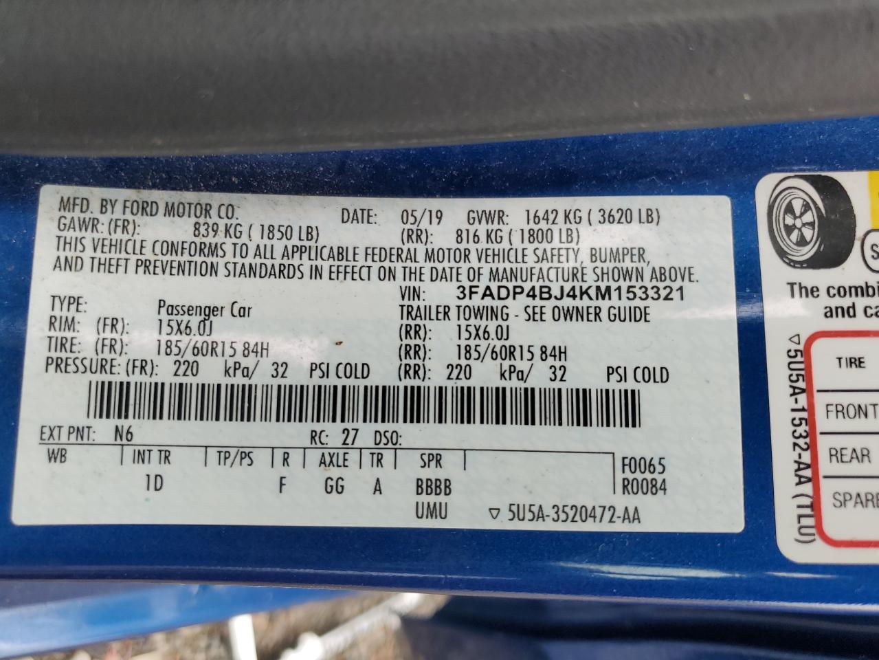 Колір СинійЦиліндри 4VIN 3FADP4BJ4KM153321Стан Заводиться та їде (перевірено)Ушкодження НезначніДата аукціона 2025-10-09