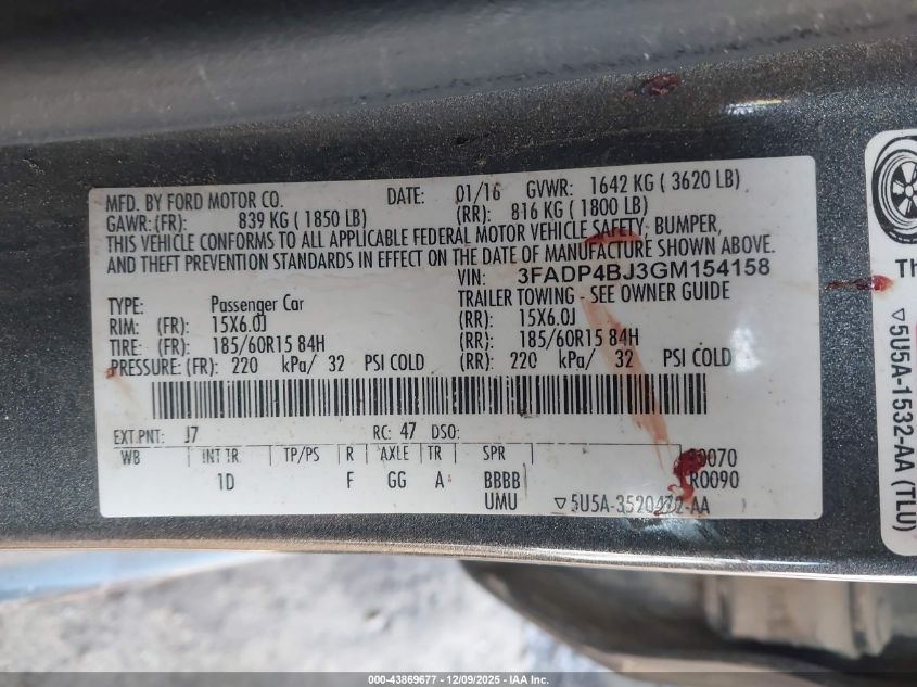 Колір СірийЦиліндри 4Привід Передній привідVIN 3FADP4BJ3GM154158Стан СтаціонарноУшкодження Перекидання