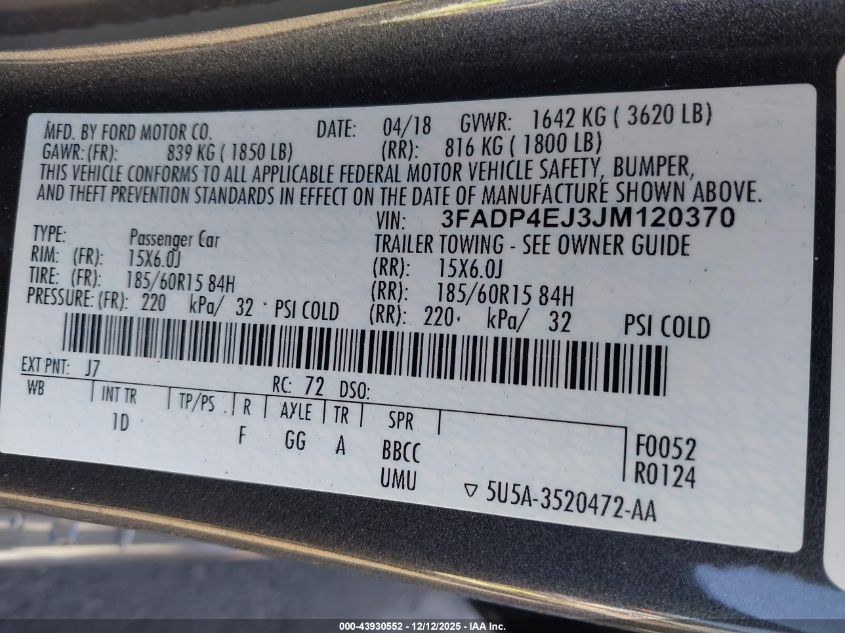 Колір СірийЦиліндри 4Привід Передній привідVIN 3FADP4EJ3JM120370Стан Заводиться та їде (перевірено)Ушкодження Задня