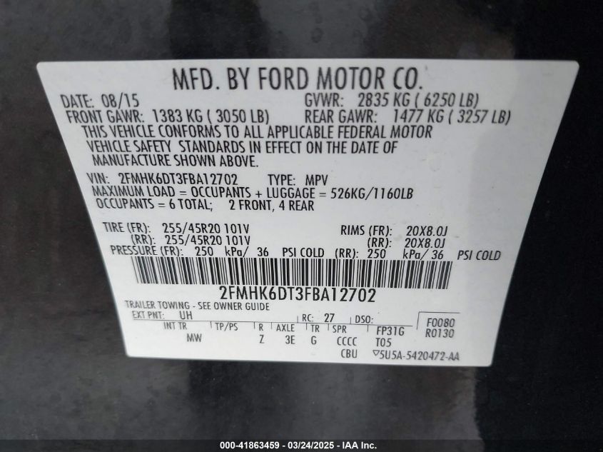 2015 FORD FLEX - 2FMHK6DT3FBA12702, колір - Сірий, 3.5, Бензин, Повний привід із США