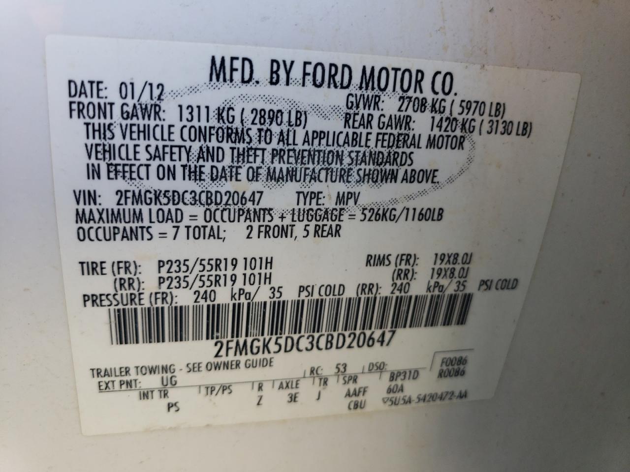 2012 FORD FLEX - 2FMGK5DC3CBD20647, колір - Білий, 3.5, Бензин, із США
