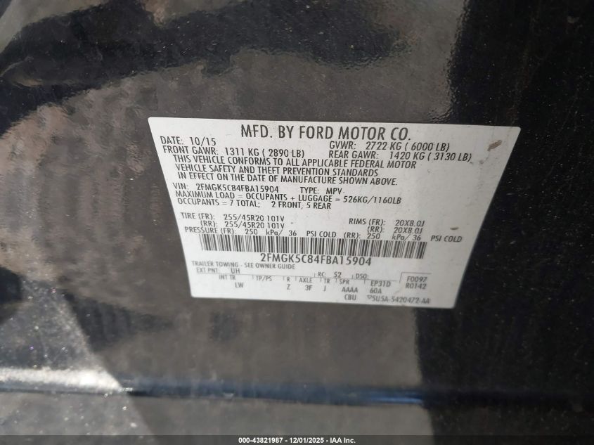 2015 FORD FLEX - 2FMGK5C84FBA15904, колір - Чорний, 3.5, Бензин, Передній привід із США