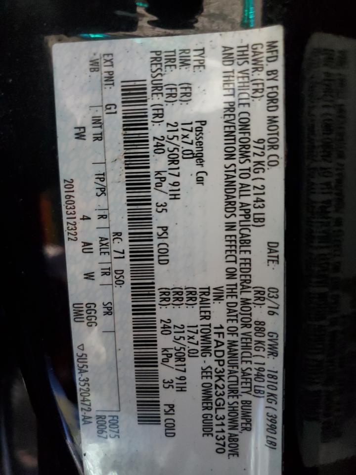 Колір ЧорнийЦиліндри 4VIN 1FADP3K23GL311370Стан ЗаводитьсяУшкодження Передня або задняДата аукціона 2025-10-07