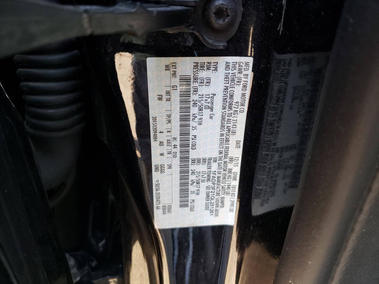 Колір ЧорнийЦиліндри 4VIN 1FADP3F21GL251261Стан НевідомоУшкодження Передня або задняДата аукціона 2025-10-06