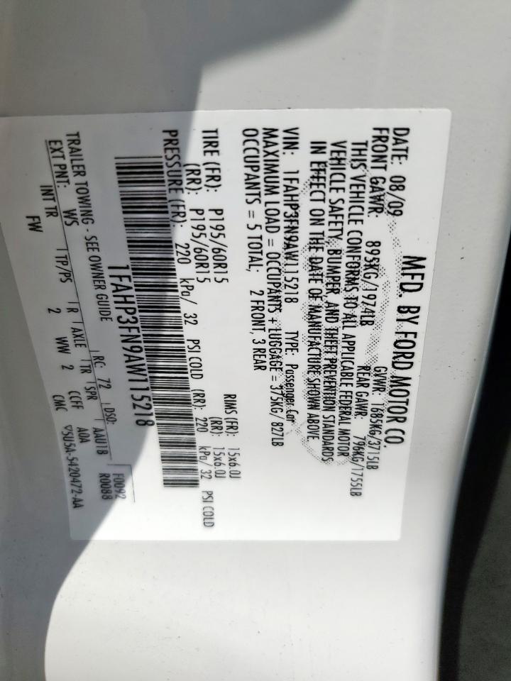 2010 FORD FOCUS - 1FAHP3FN9AW115218, колір - Білий, 2.0, Бензин, із США