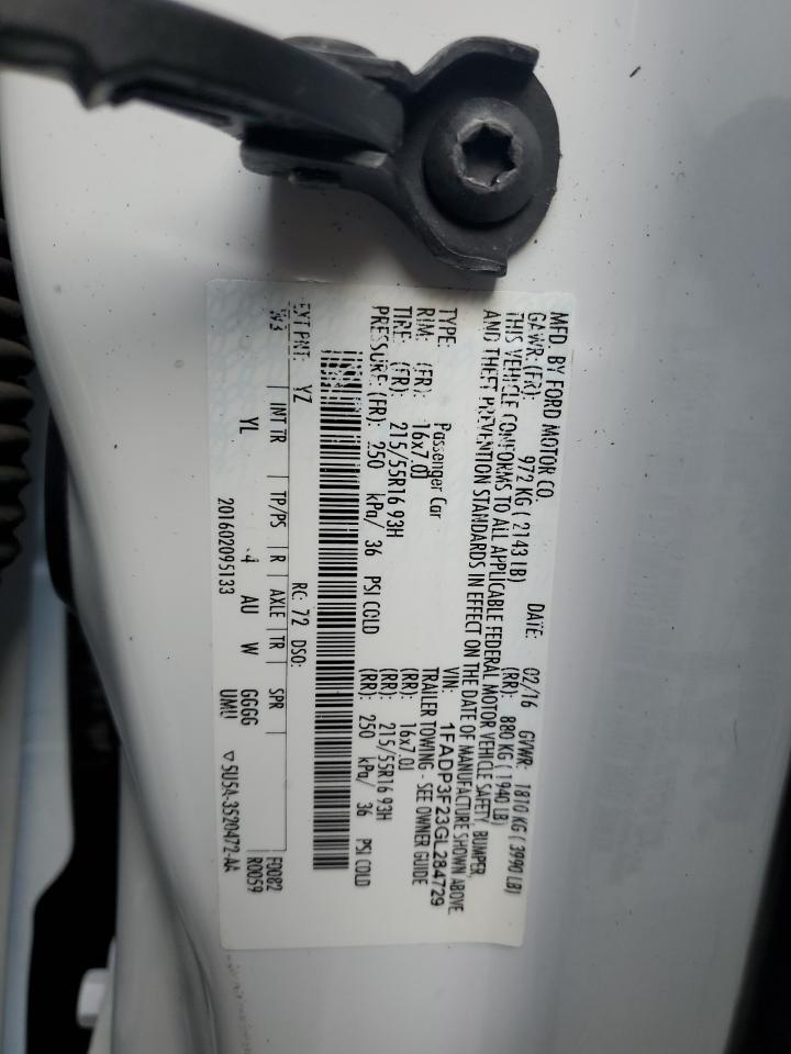 2016 FORD FOCUS - 1FADP3F23GL284729, колір - Білий, 2.0, Бензин, із США