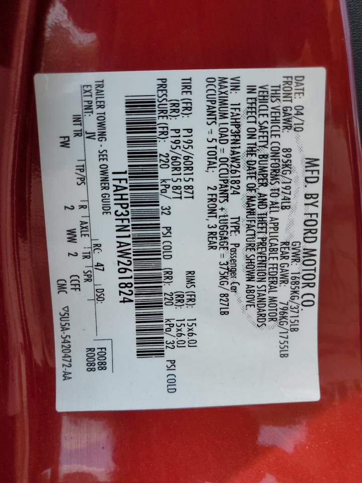 2010 FORD FOCUS - 1FAHP3FN1AW261824, колір - Червоний, 2.0, Бензин, із США
