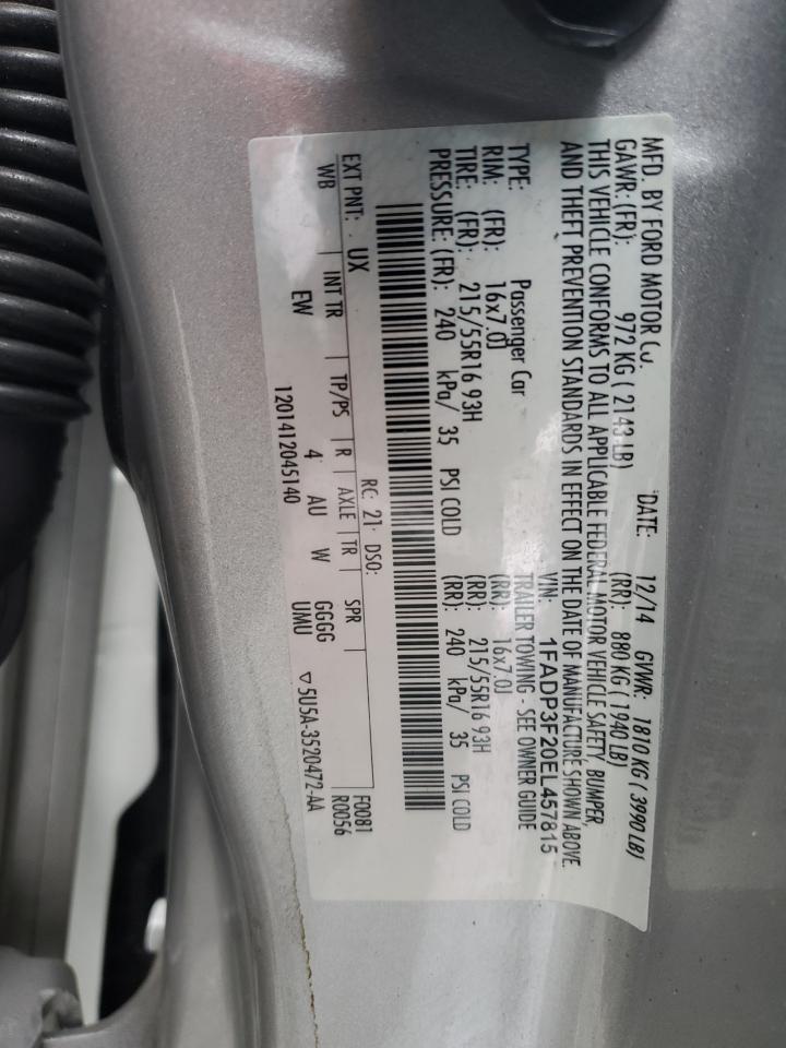 Колір СрібнийЦиліндри 4VIN 1FADP3F20EL457815Стан Заводиться та їде (перевірено)Ушкодження Передня або задня