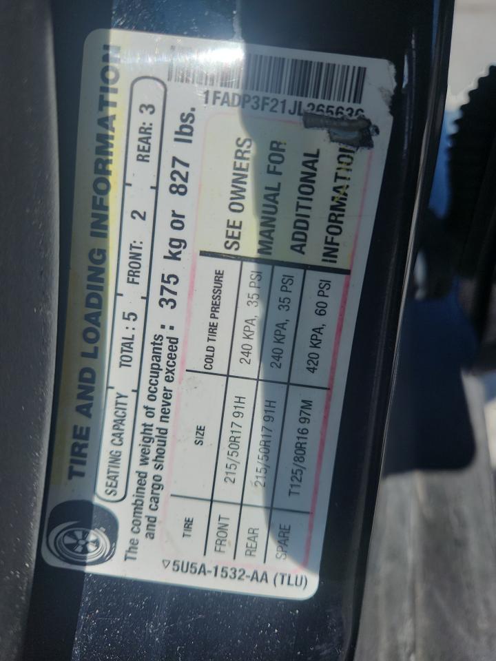 Колір ЧорнийЦиліндри 4VIN 1FADP3F21JL265636Стан НевідомоУшкодження Передня або задня