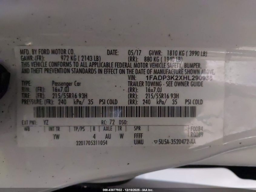 2017 FORD FOCUS SE