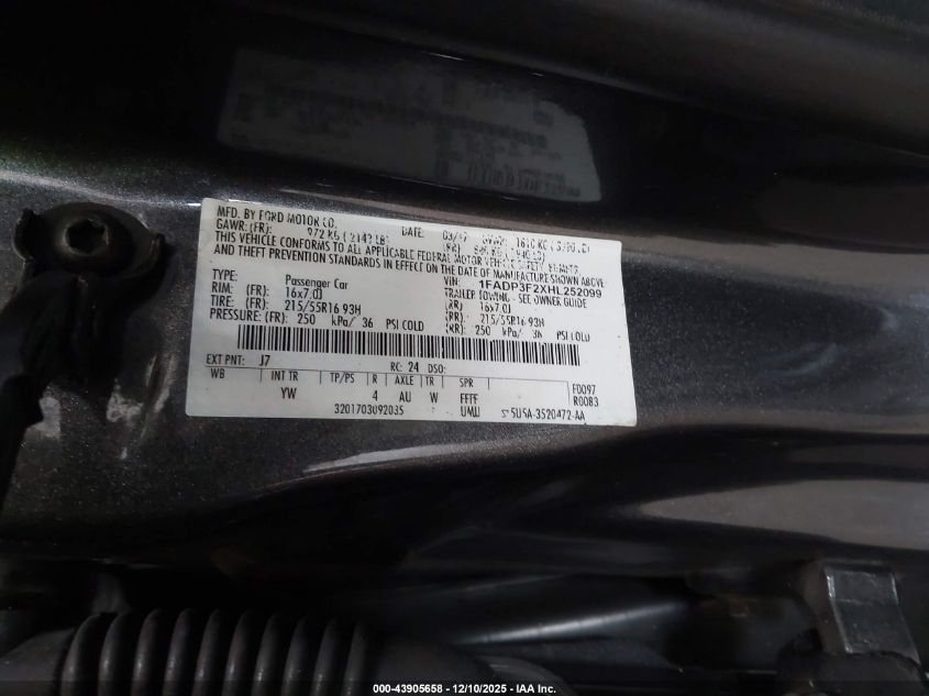 2017 FORD FOCUS - 1FADP3F2XHL252099, колір - Сірий, 2.0, Бензин, Передній привід із США