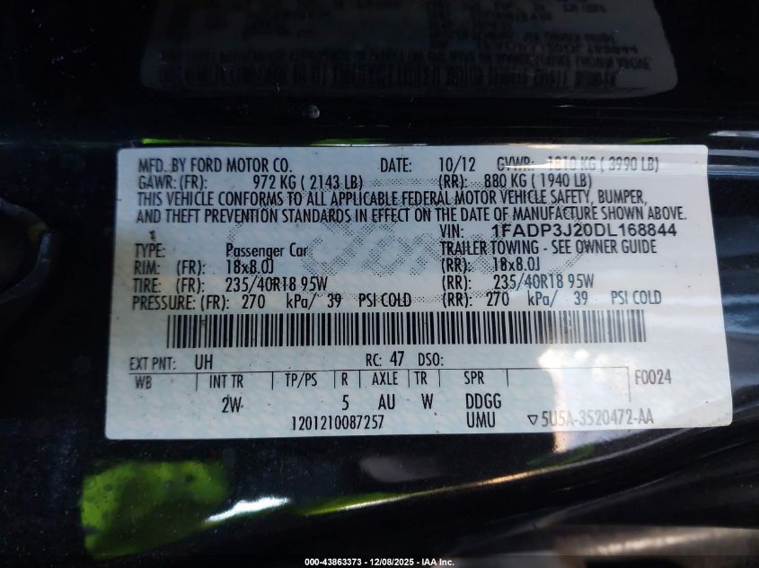 Колір ЧорнийЦиліндри 4Привід Передній привідVIN 1FADP3J20DL168844Стан Заводиться та їде (перевірено)Ушкодження Задня