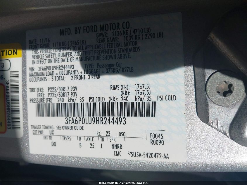 2017 FORD FUSION HYBRID - 3FA6P0LU9HR244493, колір - Срібний, 2.0, Гібрид, Передній привід із США