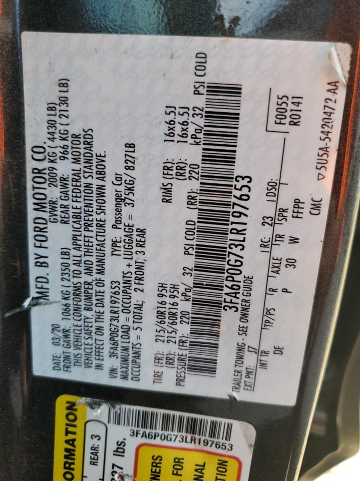 2020 FORD FUSION - 3FA6P0G73LR197653, колір - Деревне вугілля, 2.5, Бензин, із США