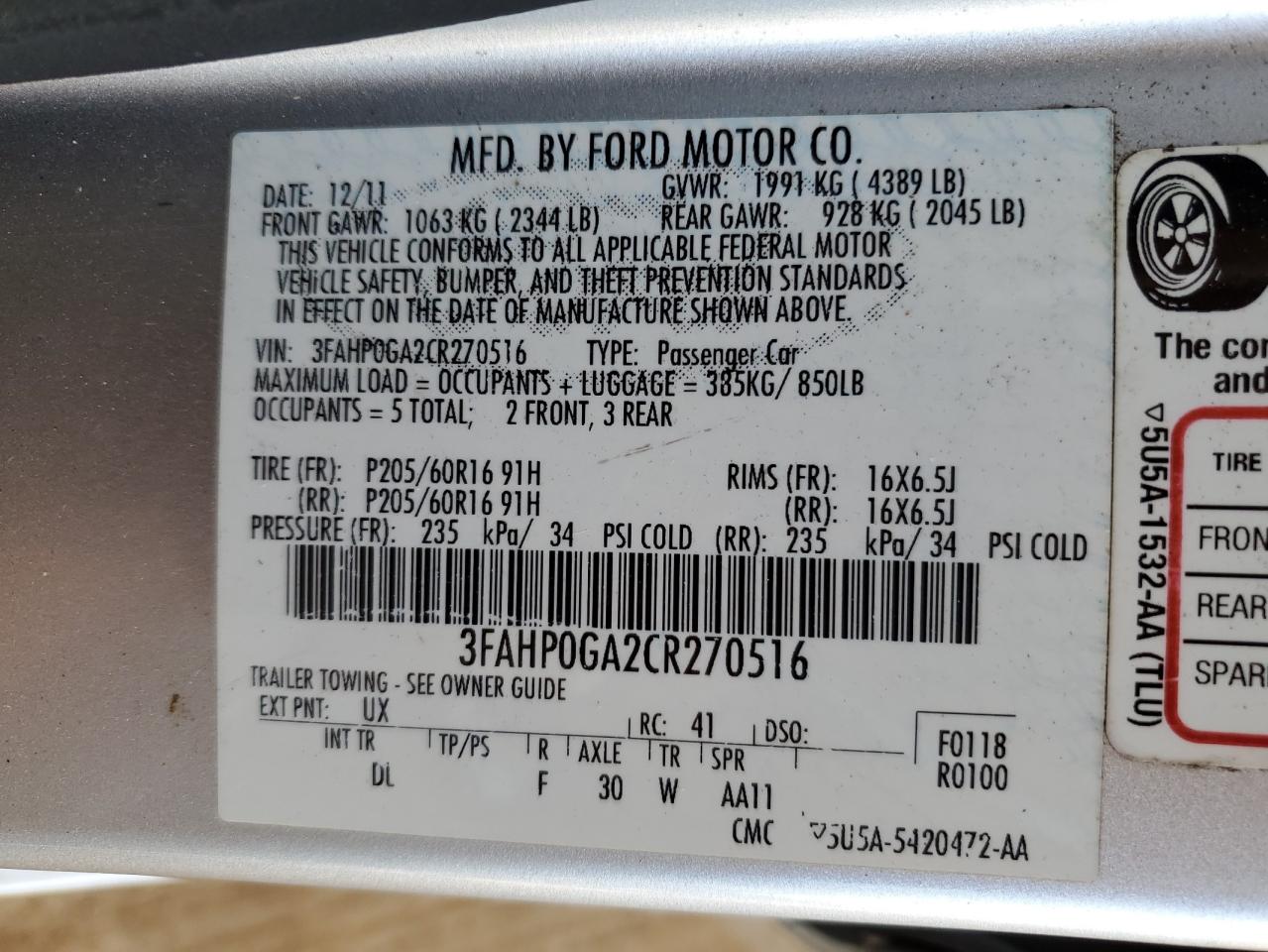 2012 FORD FUSION - 3FAHP0GA2CR270516, колір - Срібний, 2.5, Бензин, із США