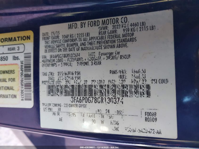 Колір Циліндри 4Привід Передній привідVIN 3FA6P0G78GR130374Стан НевідомоУшкодження Звичайний знос