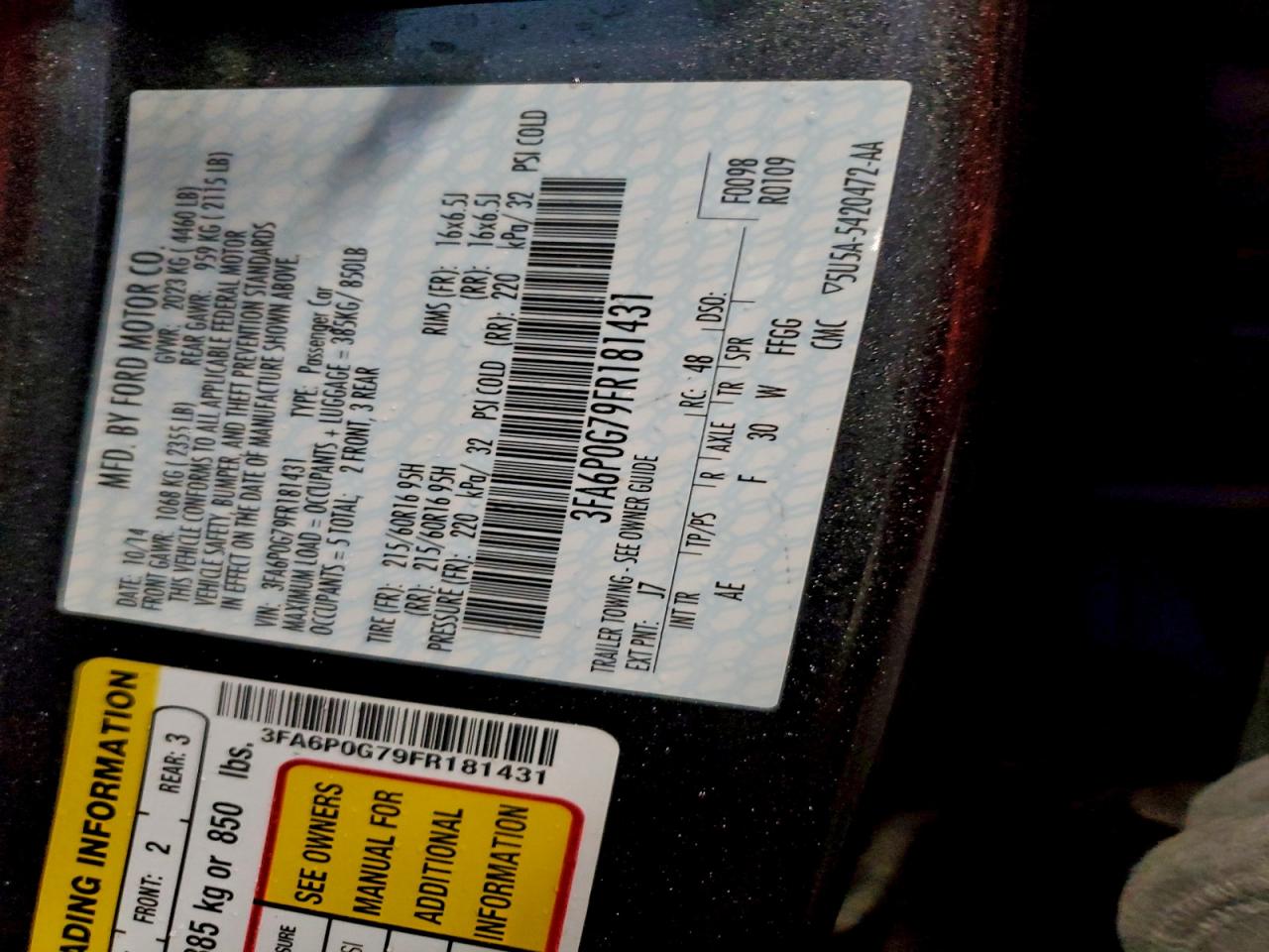 Колір Деревне вугілляЦиліндри 4VIN 3FA6P0G79FR181431Стан Заводиться та їде (перевірено)Ушкодження Передня або задня