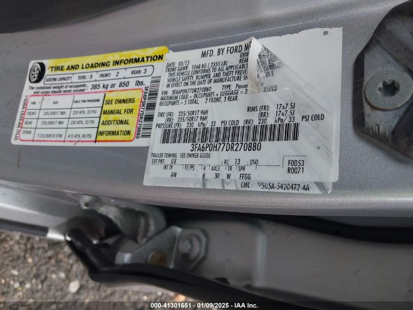 2013 FORD FUSION - 3FA6P0H77DR270880, колір - Срібний, 2.5, Бензин, Передній привід із США