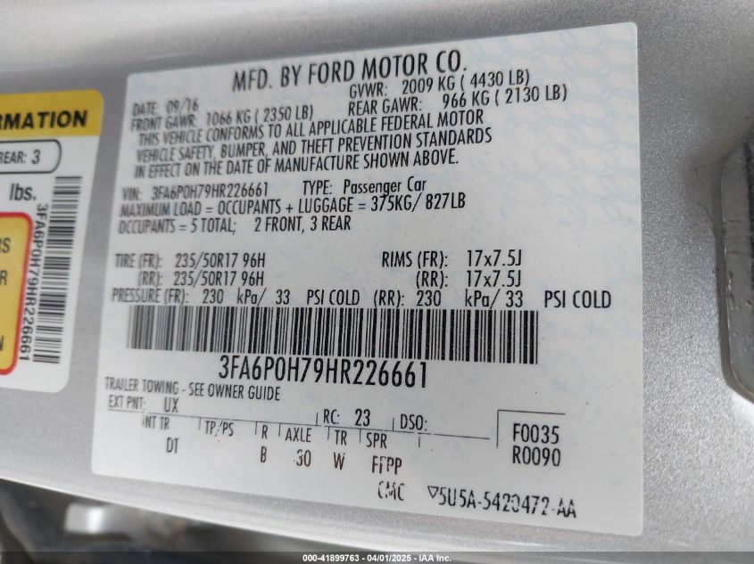 2017 FORD FUSION - 3FA6P0H79HR226661, колір - Срібний, 2.5, Бензин, Передній привід із США