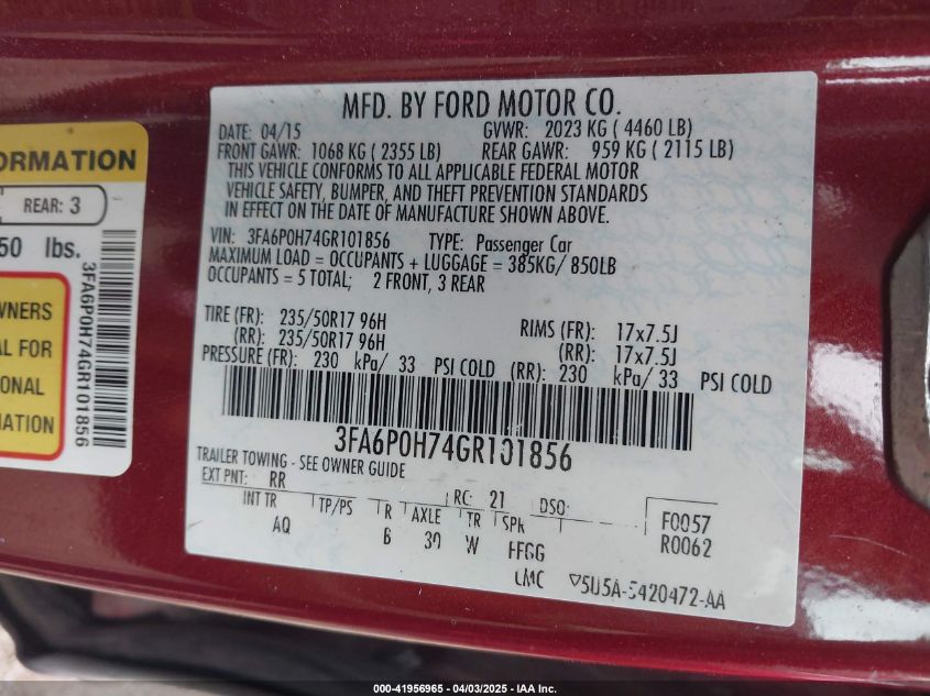 2016 FORD FUSION - 3FA6P0H74GR101856, колір - Червоний, 2.5, Бензин, Передній привід із США
