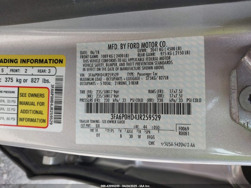 2018 FORD FUSION - 3FA6P0HD4JR259529, колір - Срібний, 1.5, Бензин, Передній привід із США