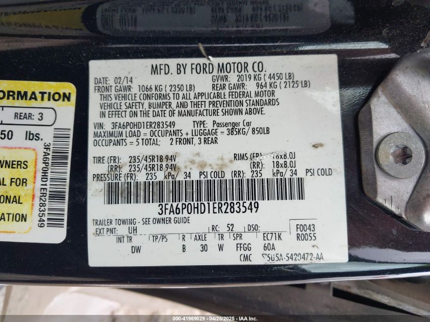 Колір ЧорнийЦиліндри 4Привід Передній привідVIN 3FA6P0HD1ER283549Стан Заводиться та їде (перевірено)Ушкодження Задня