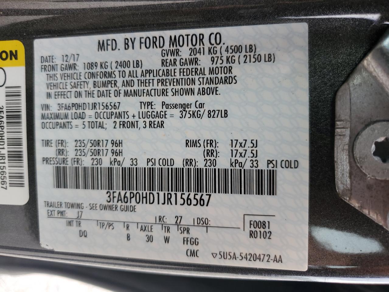 2018 FORD FUSION - 3FA6P0HD1JR156567, колір - Сірий, 1.5, Бензин, із США