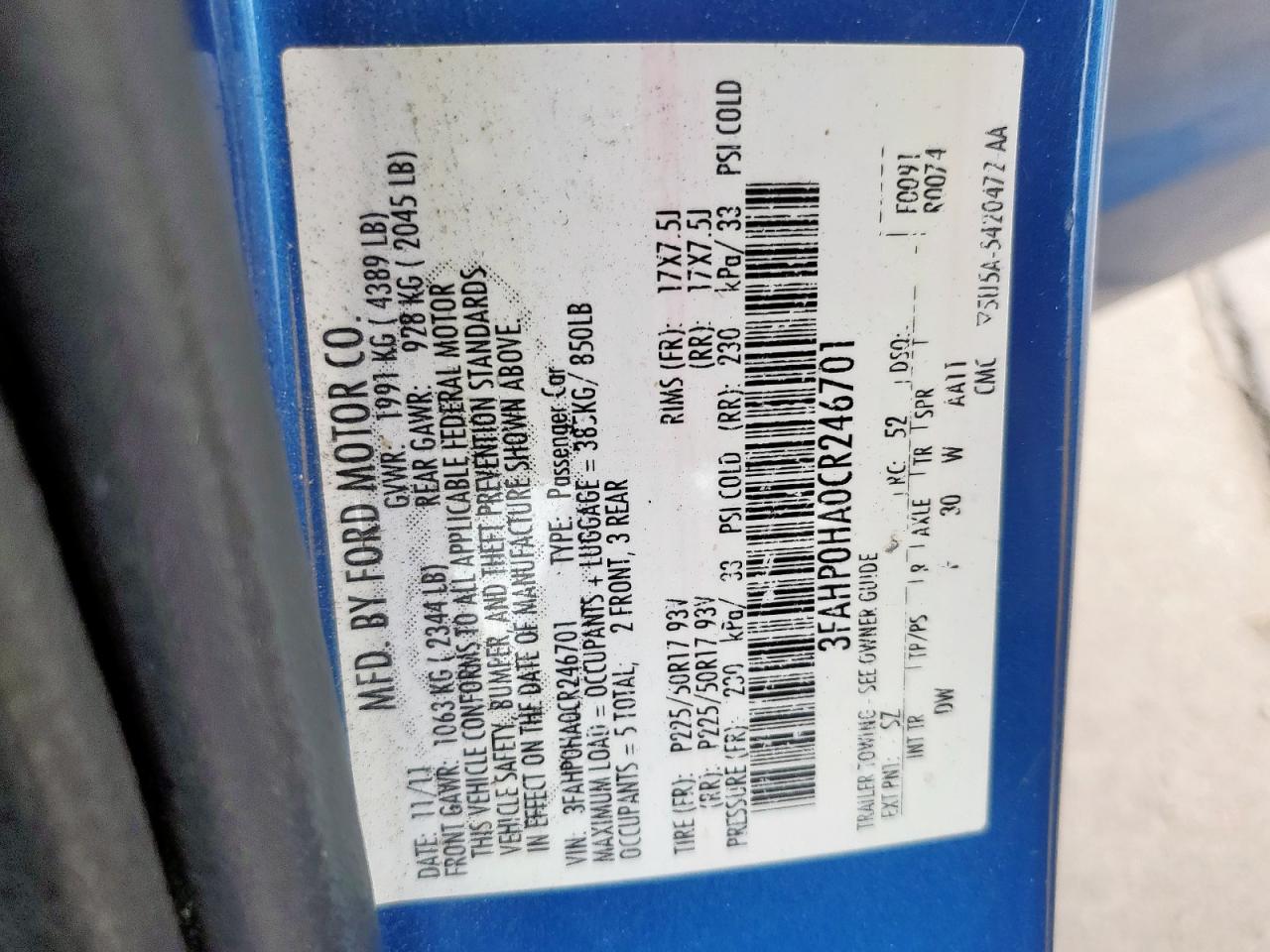 2012 FORD FUSION - 3FAHP0HA0CR246701, колір - Синій, 2.5, Бензин, із США