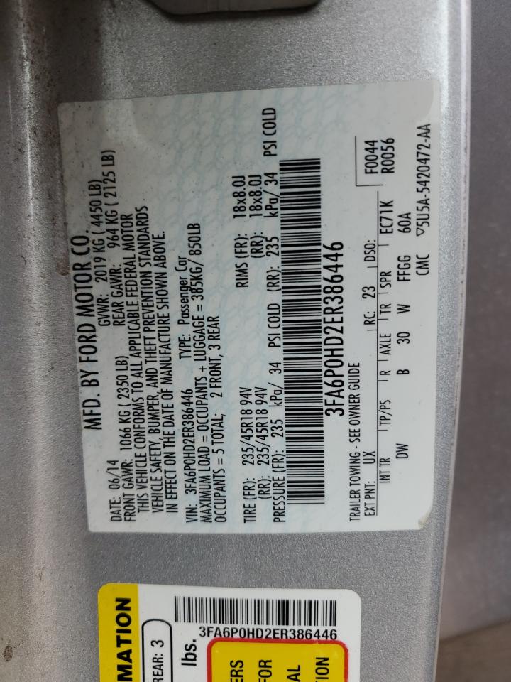 Колір СрібнийЦиліндри 4VIN 3FA6P0HD2ER386446Стан Заводиться та їде (перевірено)