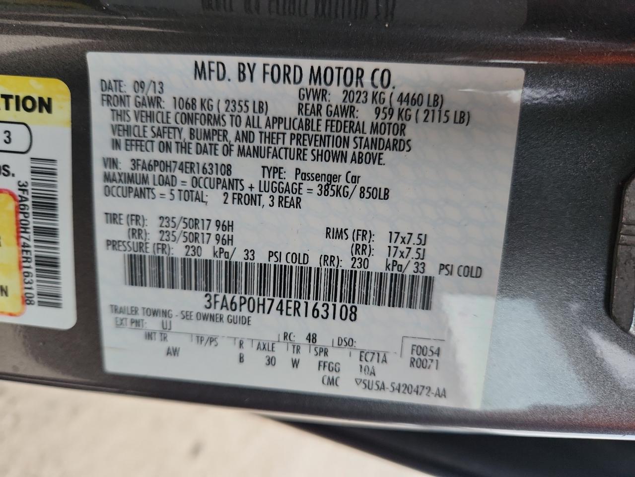Колір СірийЦиліндри 4VIN 3FA6P0H74ER163108Стан Заводиться та їде (перевірено)Ушкодження Передня або задня