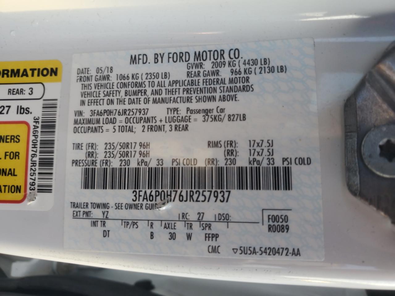 2018 FORD FUSION - 3FA6P0H76JR257937, колір - Білий, 2.5, Бензин, із США
