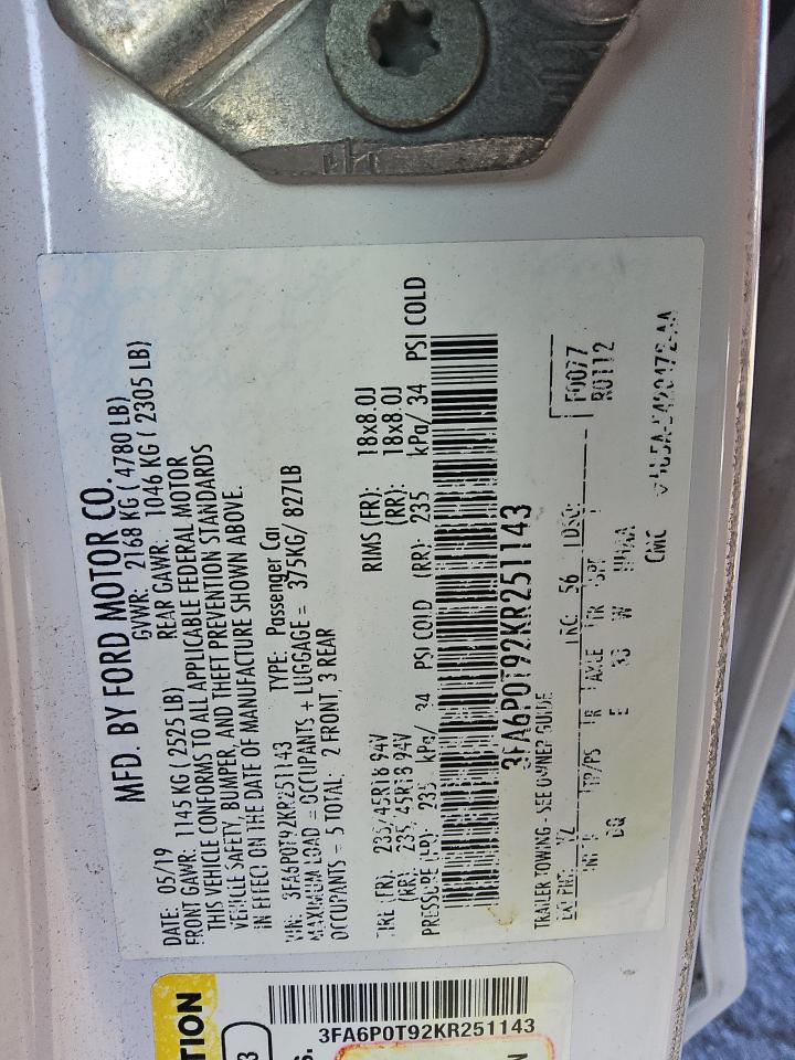 2019 FORD FUSION - 3FA6P0T92KR251143, колір - Білий, 2.0, Бензин, Повний привід із США