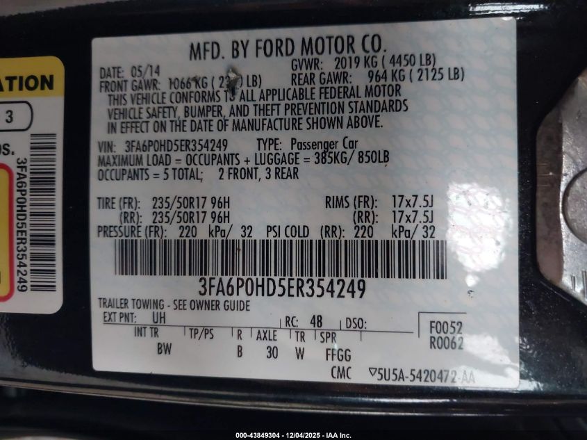 Колір ЧорнийЦиліндри 4Привід Передній привідVIN 3FA6P0HD5ER354249Стан Заводиться та їде (перевірено)Ушкодження ЗадняДата аукціона 2025-12-17