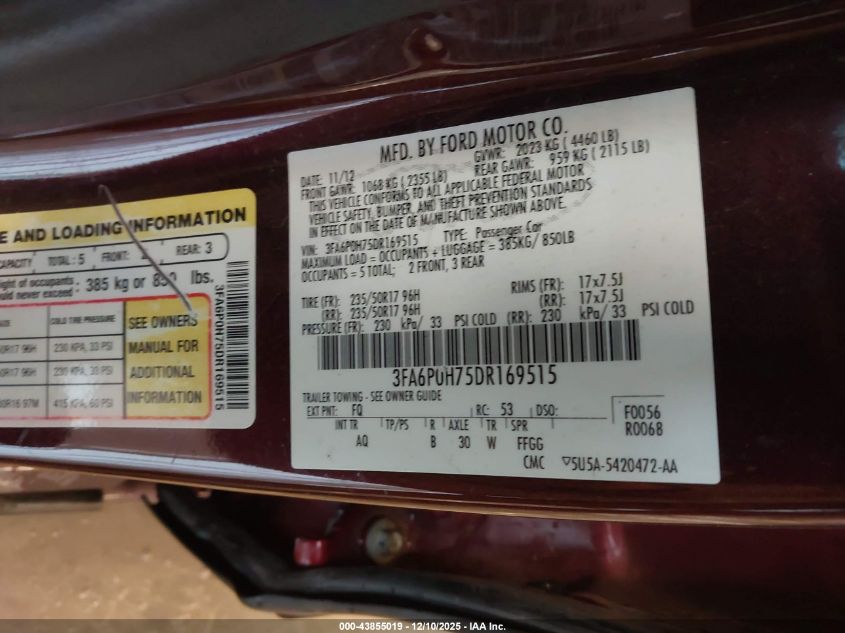 2013 FORD FUSION - 3FA6P0H75DR169515, колір - Фіолетовий, 2.5, Бензин, Передній привід із США