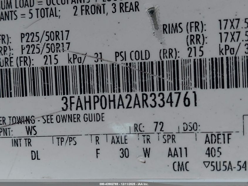 2010 FORD FUSION - 3FAHP0HA2AR334761, колір - Білий, 2.5, Бензин, Передній привід із США